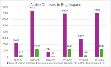 - 2024-FA: Total of Course Sections - 7000, Total of Active Brightspace Courses - 1247 (17.8%)